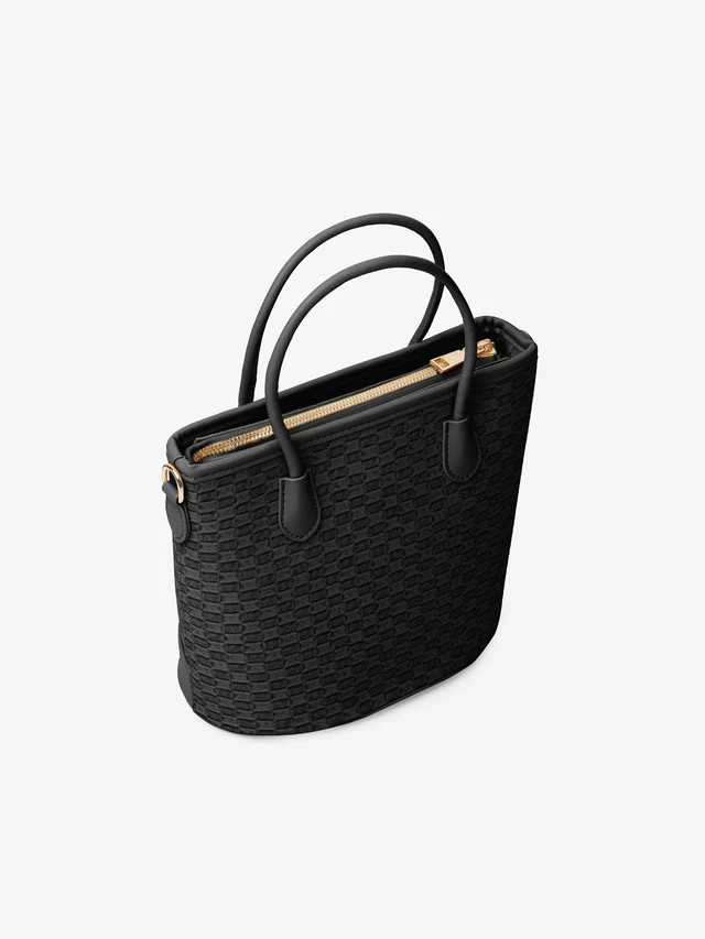 Featuring a main zipper pocket for secure storage and a convenient interior pocket, this bag ensures that your items are organized and easily accessible. The detachable and adjustable strap provides comfort and versatility, allowing you to carry it however you prefer. With two top handles for added convenience, this bag offers a blend of structure and ease.